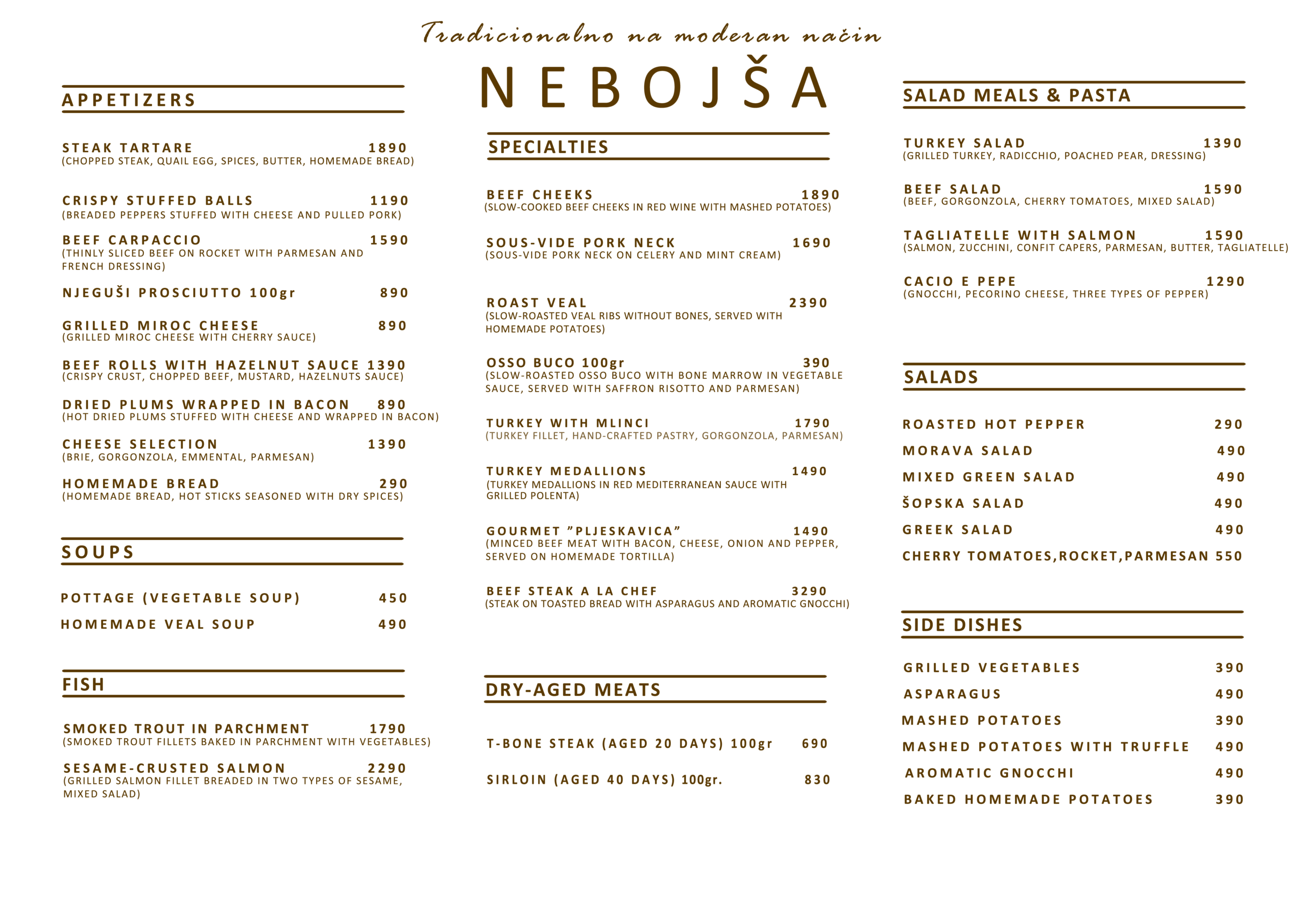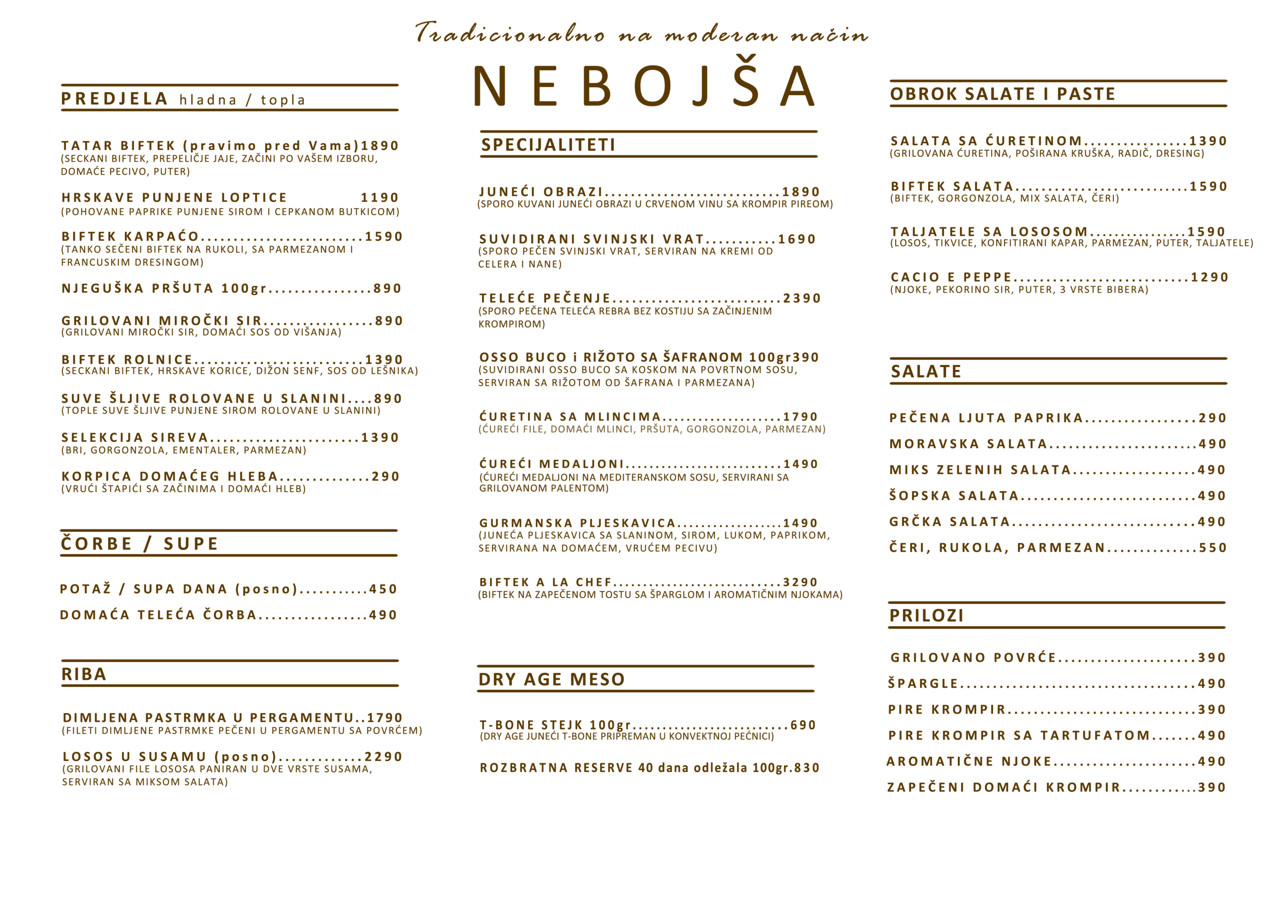 Menu Naš meni Preuzmite naš meni Srpski jelovnik English menu Rezervacije telefonske rezervacije 011 4097284 +381 637422899